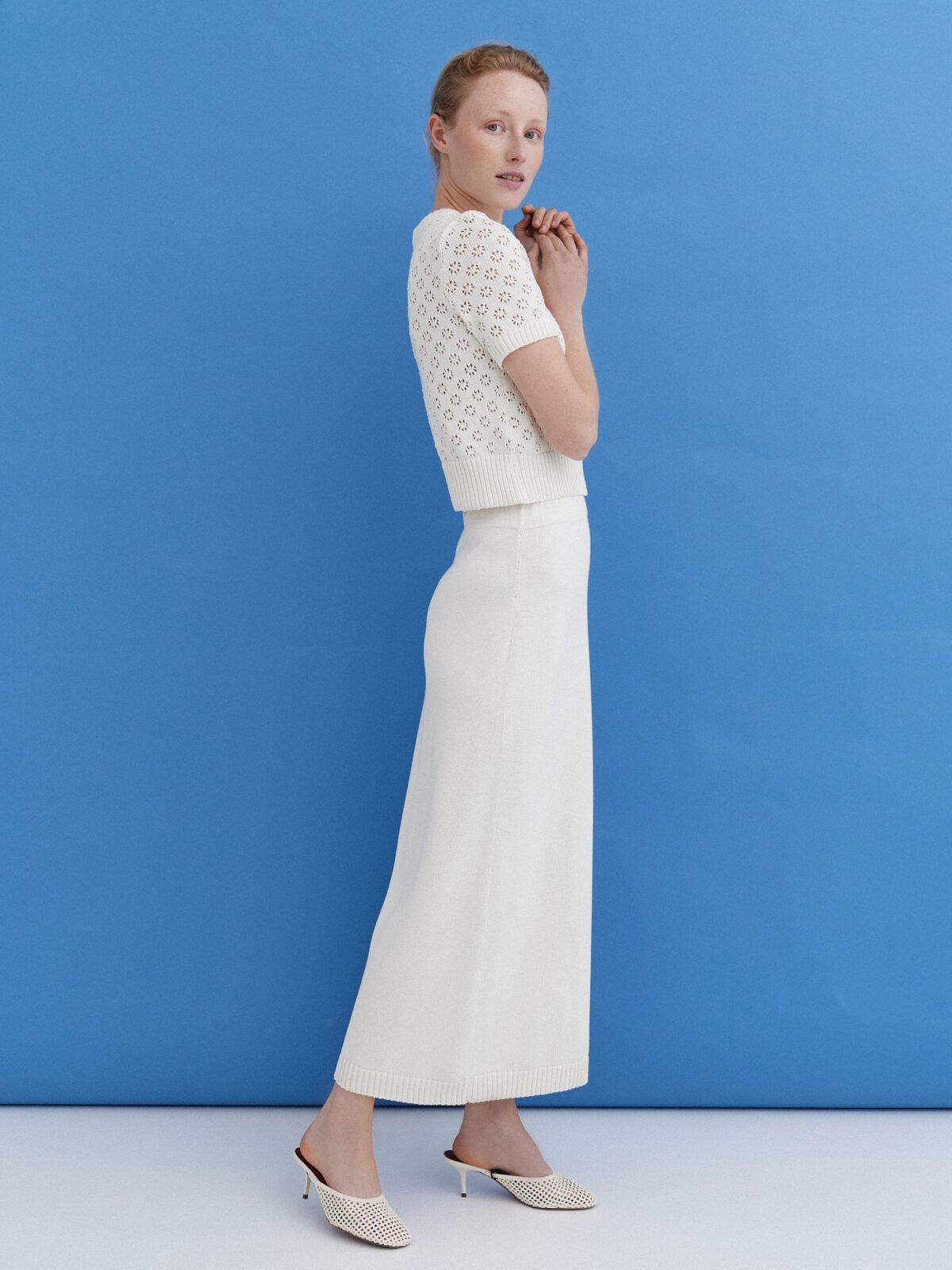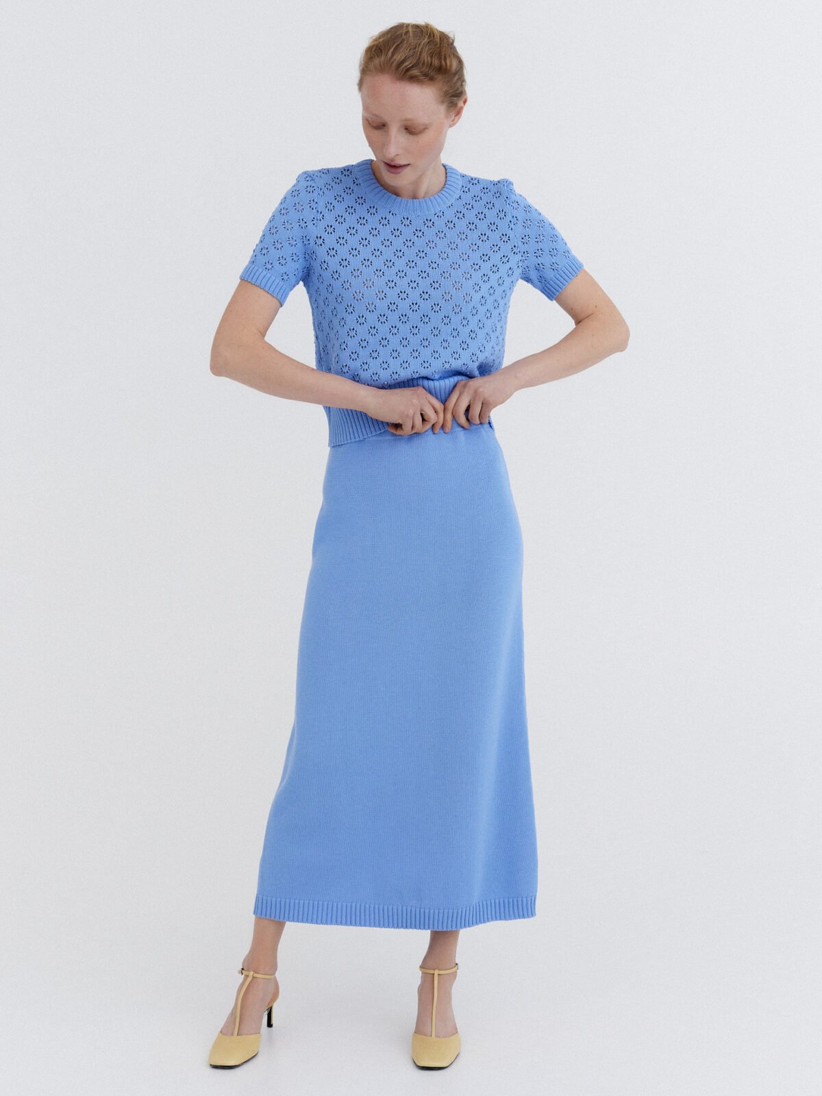 Knitted Cotton Top and Skirt Set in Sky