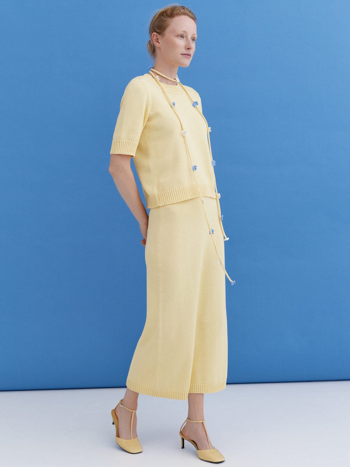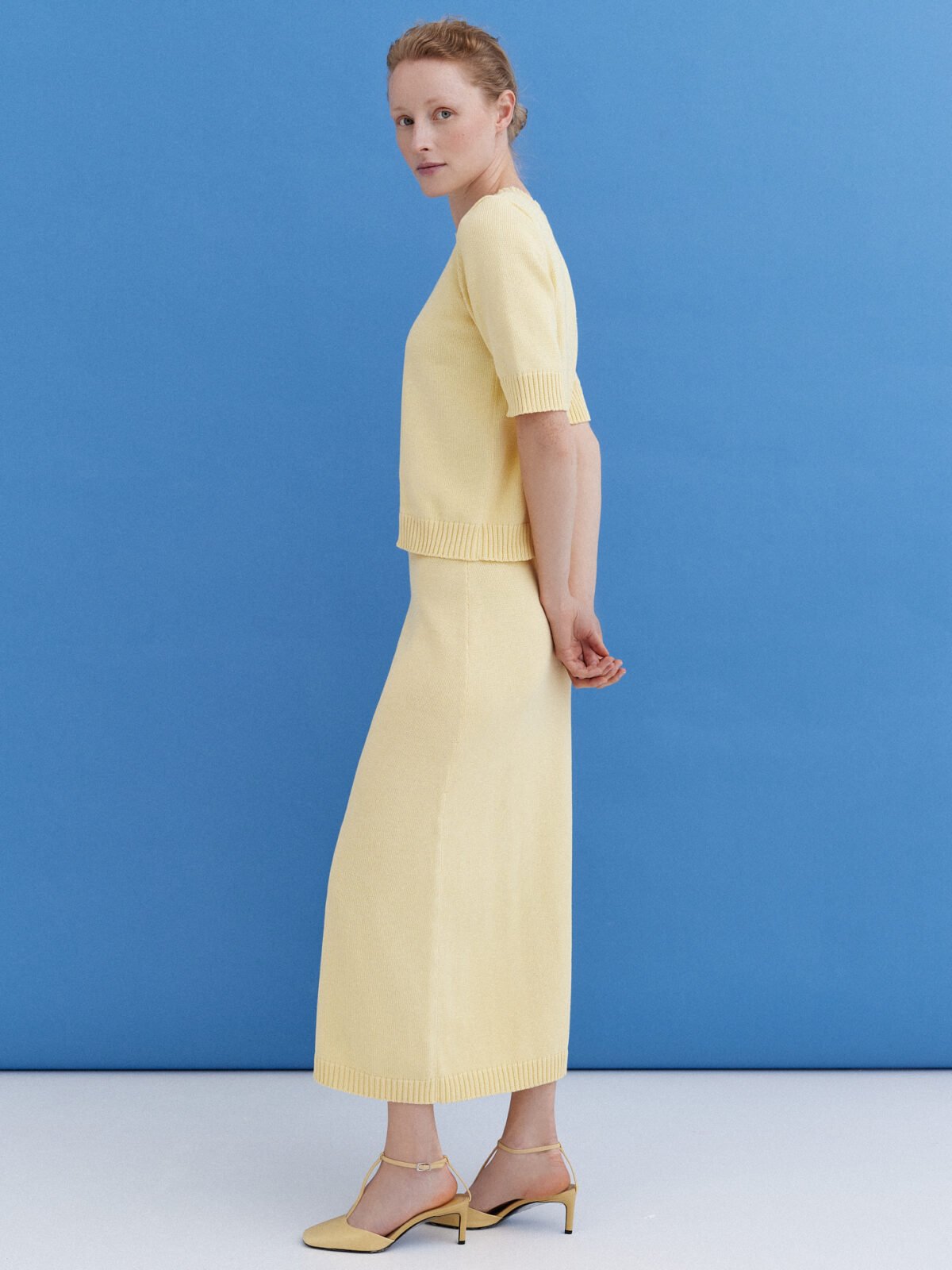 Knitted Cotton Top and Skirt Set in Sun