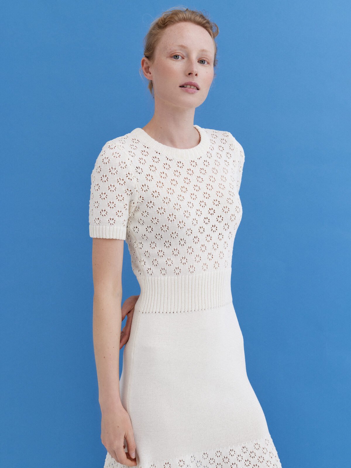 Knitted Cotton Lace Dress in Sun