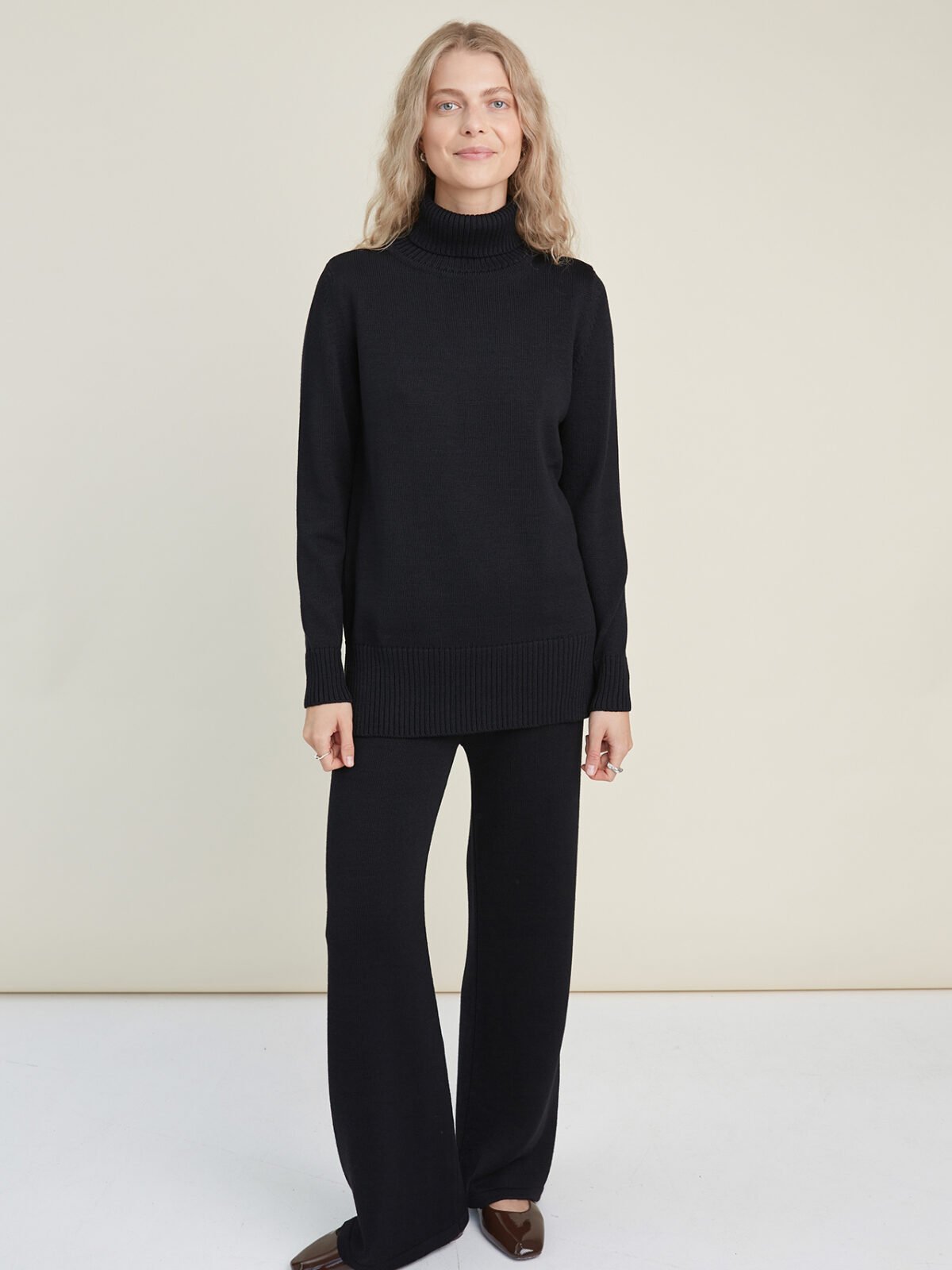 Knitted Merino Wool Pants and Sweater Set in Black